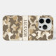 Customize this multi-hued brown desert camouflage iPhone 15 pro case with your name in a trendy modern CAP font in brown on cream. It's masculine and perfect for your favorite military, hunting, country or outdoorsman!