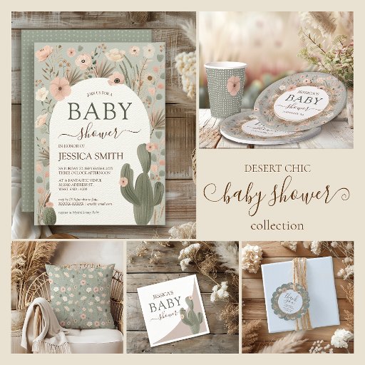 Desert Chic Baby Shower - Let us take the prickles out of your baby shower planning with this “sand-tastic” desert chic paper plate design. Bring on the desert boho vibes. Featuring dry florals and cacti accentuated with very tasteful soft green and pink tones. So hold on to your camels because this is not a mirage. This desert style paper plate will turn your celebration into a pleasant oasis retreat. Don't forget to check the collection for matching invitations and party supplies.
