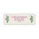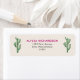 These elegant and trendy wedding or bridal shower address labels feature a cactus illustration, with black and dark pink typography on a neutral background, for a glamourous desert look.