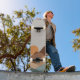 A desert sun and mountains landscape skateboard, boho style. Terracotta, bisque and green.