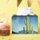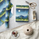 The image is a watercolor painting depicting a nighttime desert landscape.