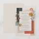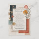 Capture the chic, artistic spirit of a desert sunset with this stunningly modern and abstract details card. This design is a masterpiece of contemporary composition, blending clean geometric shapes with soft, organic botanicals in a sophisticated, earthy colour palette of terracotta, burnt orange, and deep charcoal blue. These bold shapes are balanced by delicate sprigs of sage green eucalyptus and minimalist dried foliage, accented with shimmering gold foil dots and elegant, clean lines, all set against a warm, textured cream background. This card is the perfect way to elegantly present all the extra information your guests will need, such as accommodation, directions, or your wedding website. Its versatile and stylish design also makes it a wonderful choice not just for a wedding details card, but also as an RSVP card, a rehearsal dinner invitation, or an information card for a corporate event or milestone birthday. Set a tone of modern artistry and chic, bohemian style for your entire celebration.