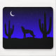 Stunning digital art featuring a nighttime desert scene with cacti and a coyote howling at the moon.