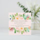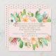 This stylish wedding invitation features trendy watercolor succulents and cactus flowers in shades of green, pink, and white with a soft earthy pink background.