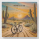 sunset painting of a bicycle in the desert surrounded by cacti