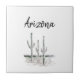 Arizona Desert Cactus ceramic tile, with a black and white design and customisable black lettering. A fun southwestern item to add to your western home decor.