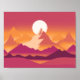Desert Sun Mountain Peaks Landscape Illustration Poster