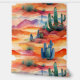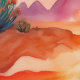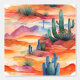 Watercolor cactus in the desert with a beautiful sunset wallpaper.