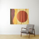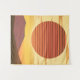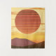 Tapestry in a retro, minimalist desert sunset over hills, in shades of deep rust orange, golden yellow, and brown