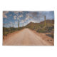 This amazing Getty Images photo features a dirt road and Saguaro National Park leading into a beautiful cloudy sunset with saguaro cactus bordering the road.