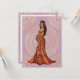 An illustration with a shining mommy to be. She is wearing traditional Indian clothing in red. In the background, golden mandalas can be seen on a pink background.
