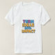 The image shows a t-shirt design with the text "Turn Ideas into Impact" in multi colour. The text is stylised with a bold, playful font that combines a mix of primary and secondary colours. Each letter is outlined in black, and a slight shadow is cast underneath to add depth. The phrase is centred on the t-shirt, with the vibrant colours creating a sense of energy and positivity. The design is simple yet eye-catching, aiming to convey a message of empowerment and encouraging self-belief. It is intended to be printed on a black t-shirt.