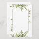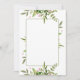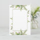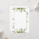 This is a blank wedding invitation for you to customize; it features leaf sprays in shades of olive and sage green, with small pink flowers and a central rectangle to add your own wording.