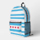 All-over print backpack with the darker variant of the flag of the city of Chicago (largest city in Illinois), white and light blue striped flag with four red stars