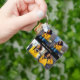 The key chain is made of metal and really sturdy. The flower design is really cheerful. The logo and colors are clear and crisp!