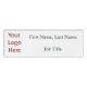 This custom name tag template features an area on the left for your company logo and an area on the right for employee's name and/or job title. Click "Customise It" to make it completely your own design.