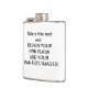 Well made flask, a little better than I had expected. Flask came in clear plastic box which gave it a nice presentation when I took it out of the zazzle packaging. Image is not printed on flask but on sticker. Don't know how this will hold up I haven't used it yet. This would make a Great gift! I plan to purchase more for friends! Cheers. I thought a little brighter than computer. Very crisp, writing wasn't