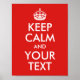 Change the text design on this classic vintage "Keep Calm and Carry On" poster design. White crown and block text. Create a parody poster for your wall. You can change the black background colour.