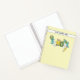 Put your name on the front and back cover of this cute school notebook with letters and school elements on both front and back. The front illustrate start of a new class while the back has element like clock, basketball and apple illustrating time for a break with play and a snack.