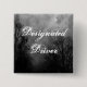 A custom designated driver button with a spooky Halloween sky with misty trees along a dark haunted road, gothic ravens and a cloudy full moon.