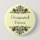 A Designated Driver button with Thanksgiving art of a cornucopia, a symbol of a bountiful harvest, with fruits and vegetables.