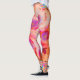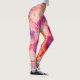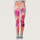 Designer abstract leggings in orange stripes, pink spiky flowers, swirls and patches.