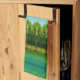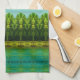 Lime green, dark green and teal kitchen hand towel. The teal can be switched to any colour to coordinate with your home decor. Text can also be added to personalise.