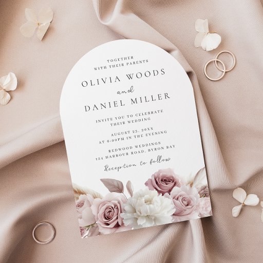 Designer Arch Blush Rose & White Floral Wedding Acrylic Invitations