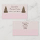 A modern business card in chocolate and pink. A border of pink with white dots accents the bottom. Perfect card for a baking company, cake decorating business, sweets, desserts, catering, restaurants, etc.