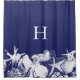 Designer Navy Blue & White Artsy Seashells Beach Shower Curtain