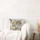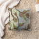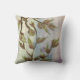 Designer interior decorator throw pillow with watercolor design with leaves in browns, mauve and light blue. Outdoor garden design