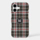 Designer tartan plaid monogram in trendy tan, white, red and black pattern iphone case with customizable monogram template.