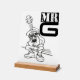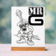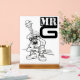 This bold desk sign features a playful cartoon design of “Mr. G,” a cool character with the body of a guitar rocking oversized sneakers, shades, and a laid-back street style. The mix of music and urban attitude makes it a fun piece for musicians, teachers, or anyone wanting to add personality to their workspace. The eye-catching black-and-white design gives it a versatile edge that fits in both casual and professional settings.