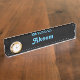 The product was just like it was in the pics, everyone at work loves it! Came on time and it was neatly packed. Bold and Clear. My name can be seen from far and it matches in color.