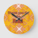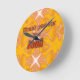 The clock did not take as long to arrive as I thought it might and was extremely well packaged. I didn't do the measurements so I didn't realize it is a little smaller than the average clock but that does not matter (just make sure you check if that's important to you).It is really nifty! It seems very solid and well made not flimsy at all. It has been going well and has kept good time in its few weeks on my wall. Nice product. Gets noticed too! Nicer in real life than the picture but true to the picture