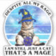 Despite All My Rage I Am Still Just A Cat That's A Mage. This funny RPG tabletop gaming accessory would be a great gift for role playing gamer geeks who are also cat lovers. Great to wear on game night while slaying monsters & dragons! If you love playing table top fantasy board games, this design is for you! Graphic shows a kitty wearing a wizard hat, who's rolled a critical hit natural D20 using polyhedral dice.