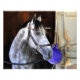 This roan colt by Giant's Causeway, stands quietly inside his stall during a glorious morning at beautiful Saratoga Springs. A classic head shot of this stunning racehorse with gleaming eyes, dappled body and white face with a brown mane. Wearing a brown leather halter, Destin is very relaxed next to his cobalt blue play ball.