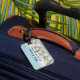 This luggage tag is great for the traveller who loves beach destinations. The photo features a sandy beach with palm trees and cool blue water. You can add your own information in the front. On the back there is an area for a Name, Email and Phone Number.