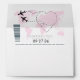 This design features a boarding pass theme. It showcases a pink map of the world along with two aeroplanes making a heart shape as they travel around the world. This destination themed wedding design is set out like a boarding pass with the date of the wedding personalised in the squares. A romantic destination design with an elegant touch. Ideal for a destination wedding no matter where in the world. The perfect all season travel wedding invitation envelope with return address. Matching wedding invitations and other stationery items are also available.