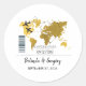 This design features a boarding pass theme. It showcases a gold map of the world along with two aeroplanes making a heart shape as they travel around the world. This destination themed wedding design is set out like a boarding pass with the date of the wedding personalised in the squares. A romantic destination design with an elegant touch. Ideal for a destination wedding no matter where in the world. The perfect all season travel wedding sticker design. Matching wedding invitations and other stationery items are also available.