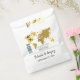 This design features a boarding pass theme. It showcases a gold map of the world along with two aeroplanes making a heart shape as they travel around the world. This destination themed wedding design is set out like a boarding pass with the date of the wedding personalised in the squares. A romantic destination design with an elegant touch. Ideal for a destination wedding no matter where in the world. The perfect all season travel wedding favour bag design. Matching wedding invitations and other stationery items are also available.