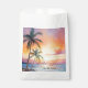 Beach theme wedding design features evening sunset sky, palm trees, blue ocean and sandy beach. Personalise with your own text. Use Edit Design tool to change font size, style or colour. Check out the whole collection for invitations, matching favour bags, stickers, thank you cards, banner and more…