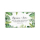 This destination tropical green wedding RSVP address label is perfect for a simple wedding. The design features hand-painted watercolor green palm and banana leaves neatly arranged into beautiful bouquets.