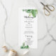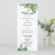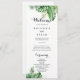 This destination tropical greenery wedding program is perfect for a simple wedding. The design features hand-painted watercolor green palm and banana leaves neatly arranged into beautiful bouquets.