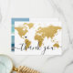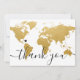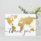 Destination Wedding Gold World Map Wedding Photo Thank You Card
