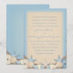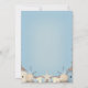 A beautiful destination wedding invitation with an exotic beach theme. The layout of the text on this invitation is designed for occasions where the Bride's Parents are hosting the wedding, other layouts are available. A pretty sand texture background pattern in neutral cream tones and shades of ocean blue is scattered with lots of little beach pebbles. On top of the pebbles are a variety of sea shells, sea urchins, starfish and pearls.