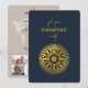 A navy blue destination wedding passport design with gold compass and travel elements. This design is ideal for all Spring, Summer, Fall and Winter destination weddings. An elegant navy blue and gold wedding travel design with passport layout, world map and custom couple photo. A modern destination wedding invitation design with elegant elements. Matching wedding stationery items and other wedding invite formats are also available.