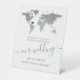 Destination Wedding World Map Silver Welcome Pedestal Sign