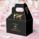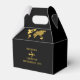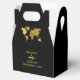 A black and gold destination wedding passport design with gold world map, airplane and travel elements. This design is ideal for all Spring, Summer, Fall and Winter destination weddings. An elegant black and gold wedding travel design with passport layout, world map and custom couple photo. A modern destination wedding favor box design with elegant elements. Matching wedding invitations and other stationery items are also available.