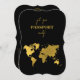 A black and gold destination wedding passport design with gold world map, airplane and travel elements. This design is ideal for all Spring, Summer, Fall and Winter destination weddings. An elegant black and gold wedding travel design with passport layout, world map and custom couple photo. A modern destination wedding invitation design with elegant elements. Matching wedding stationery items and other wedding invite formats are also available.
